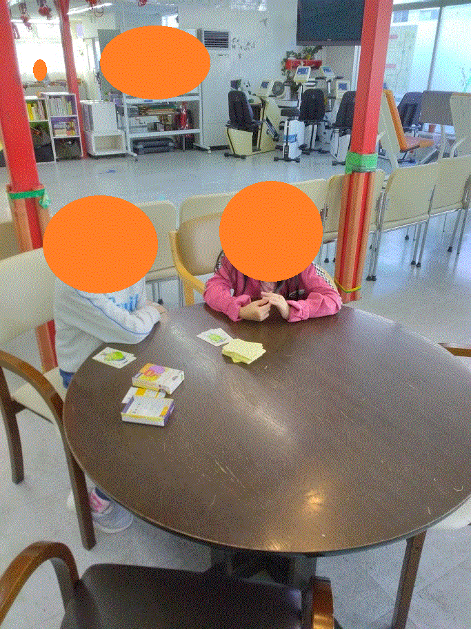 写真の女子たちは大人しくカードゲームに夢中になっています。