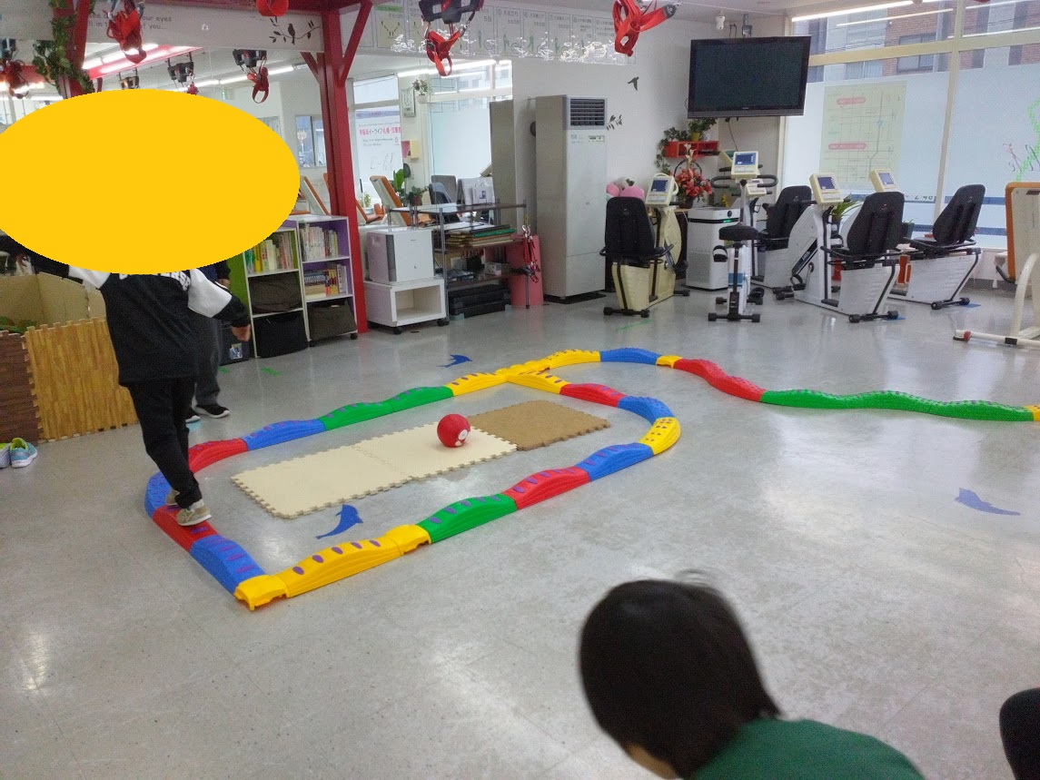 ただ渡るのではなく、ルートを決めて、青色の平均台を