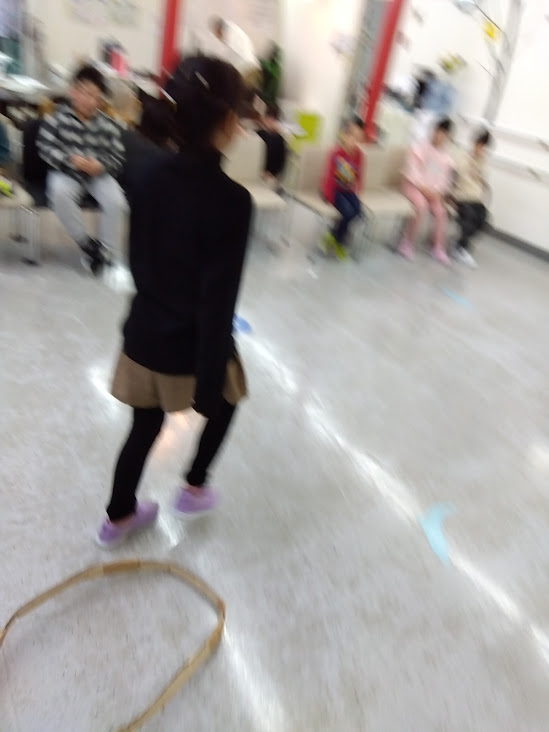 「今だ!」という声かけに集中し、リングの動きを目で追いながら跳ぶ姿が見られました。